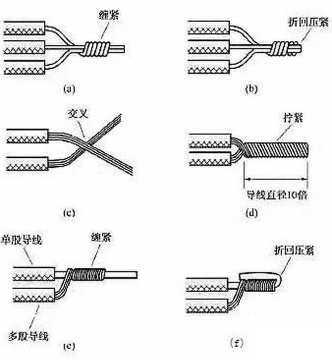 絞合連接是指將需連接導(dǎo)線的芯線直接緊密絞合在一起。銅導(dǎo)線常用絞合連接。