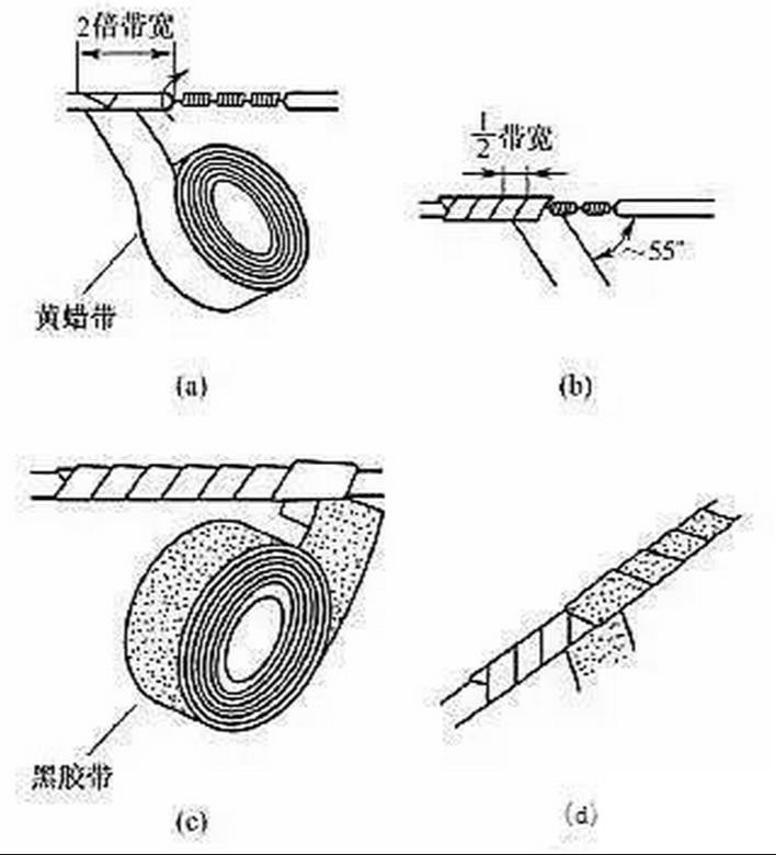 為了進(jìn)行連接,導(dǎo)線連接處的絕緣層已被去除。導(dǎo)線連接完成后,必須對所有絕緣層已被去除的部位進(jìn)行絕緣處理,以恢復(fù)導(dǎo)線的絕緣性能,恢復(fù)后的絕緣強(qiáng)度應(yīng)不低于導(dǎo)線原有的絕緣強(qiáng)度。